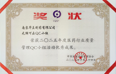 南京华盖制药荣获2025年度全国医药行业质量管理QC小组优秀成果奖